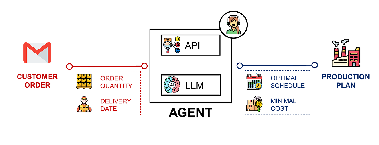 - A Production Planning Agent that provides the optimal production plan based on orders received by email.