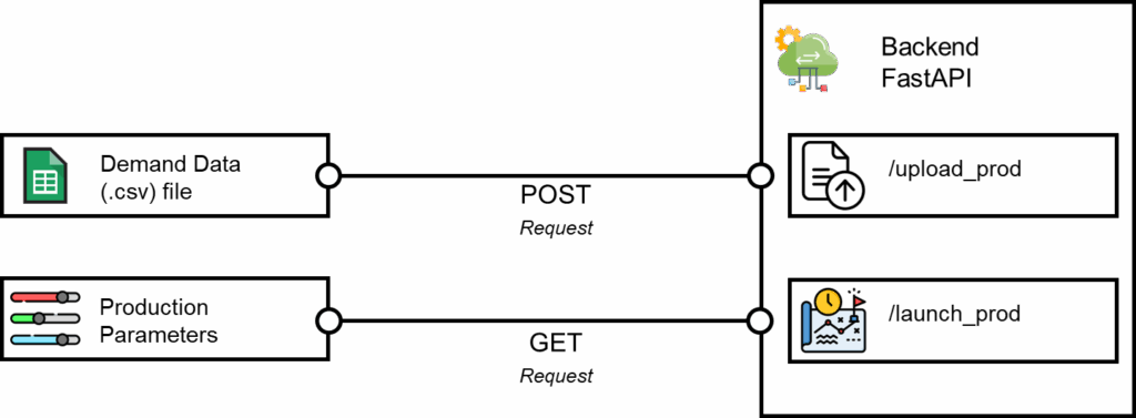 - /upload_prod: this endpoint receives a POST request with the demand dataset included to upload it to the backend