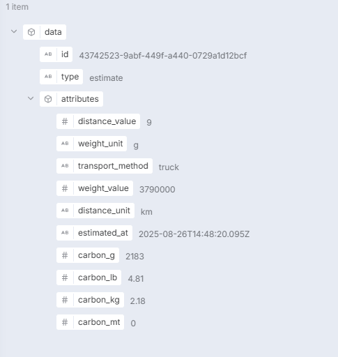 These parameters are used to query the Carbon Interface API, which returns the emissions.