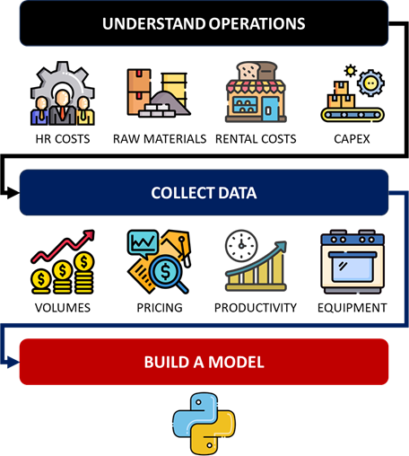 - Build a Python model to replicate their current setup and simulate different scenarios.