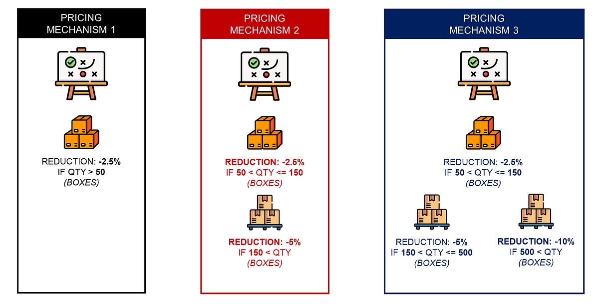 She proposed multiple pricing strategies, presented above, to increase the quantity ordered by customers.