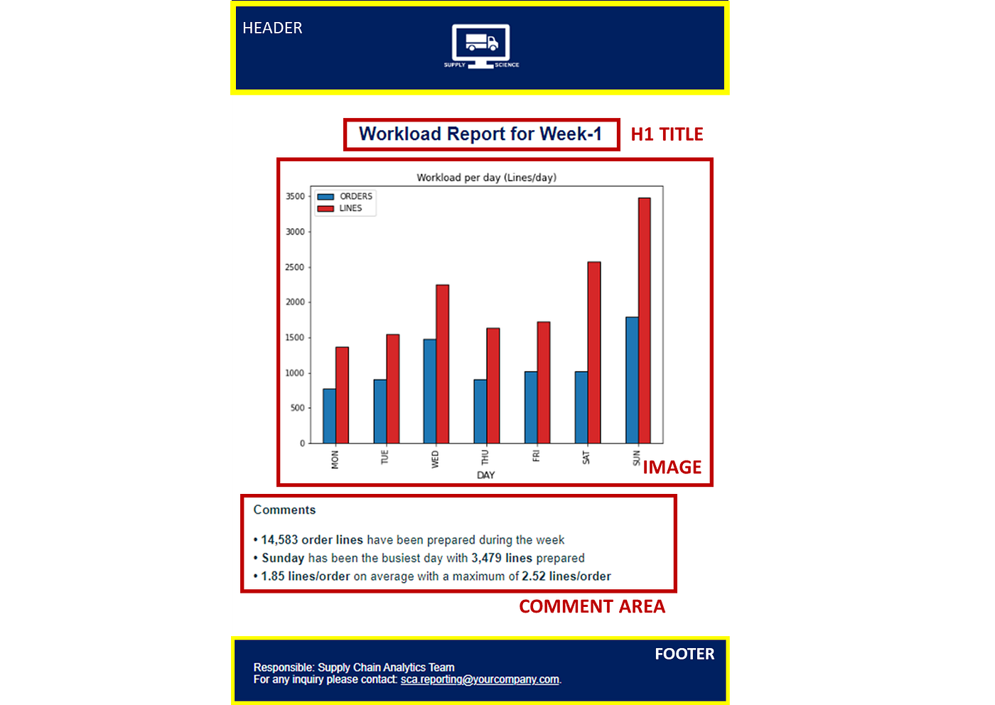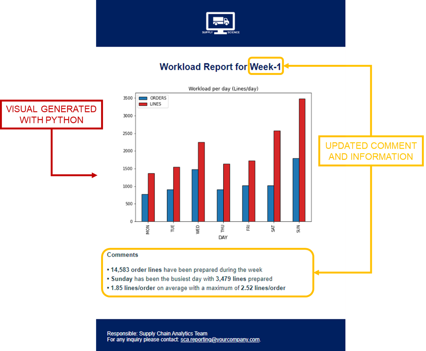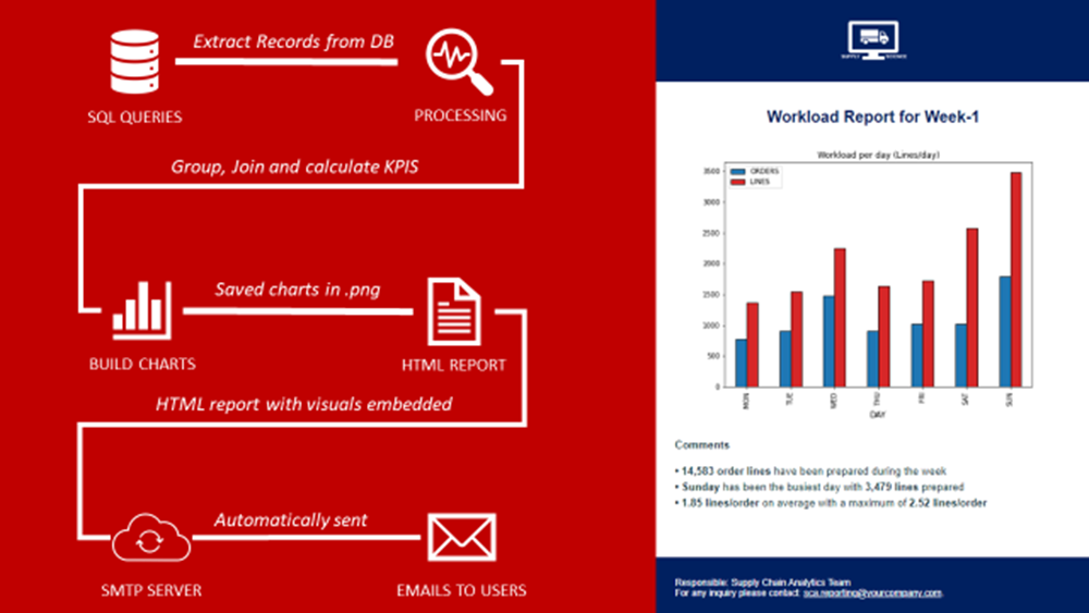 Automate the distribution of supply chain operational reports with visuals in HTML emails using python.