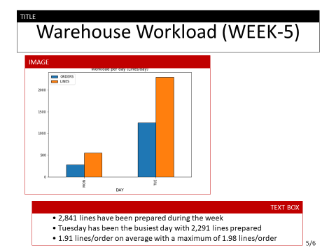 - A title on top (e.g, Warehouse Workload (WEEK-5))