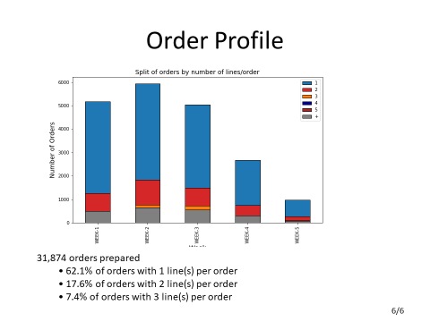 - 5 slides with visuals of the daily workload (left) and 1 slide for the monthly analysis of the order profile (right)