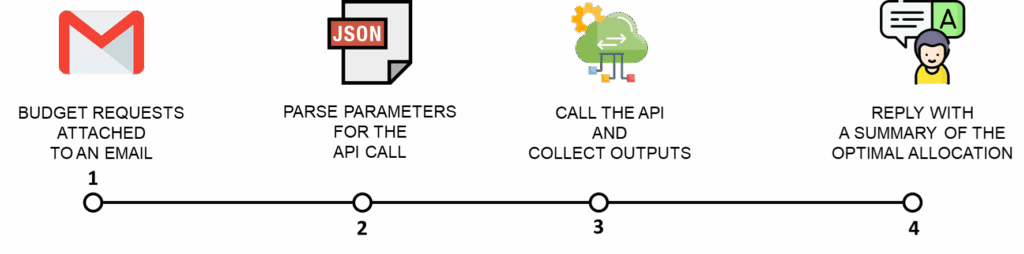 - Step 2: An AI Agent Parser will collect the parameters from the email and call the other API for Budget Planning