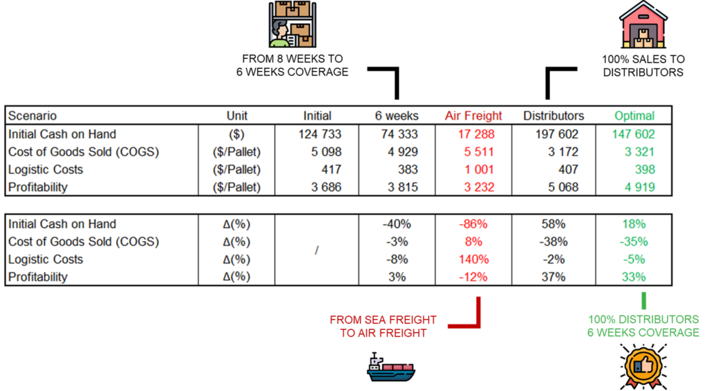 Then I enriched the model considering sales channel strategy, payment terms and many other strategic business parameters to help him find the optimal business plan to maximise profitability.