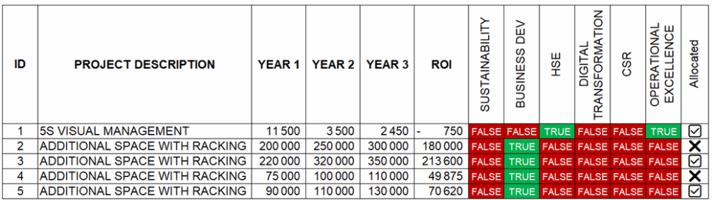 Let us assume that our Asia Pacific Director received a spreadsheet with all the CAPEX applications.
