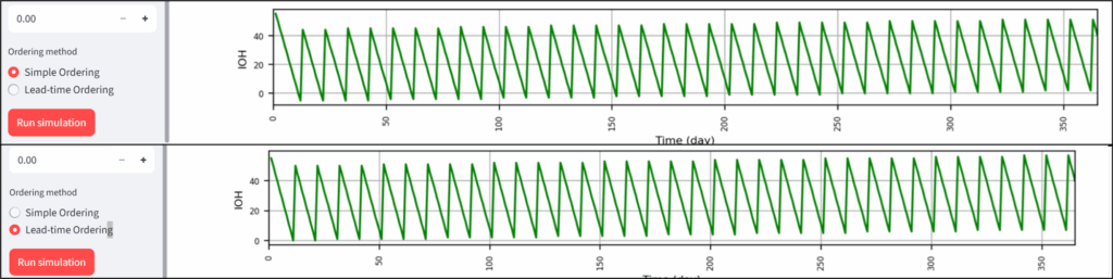 - method="order_leadtime": is the improved method that orders at day = T - LD
