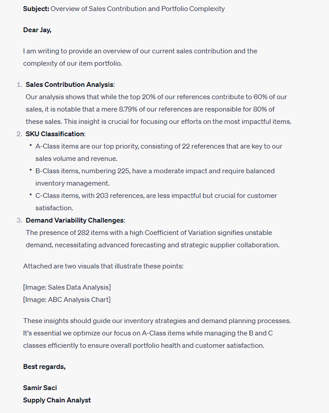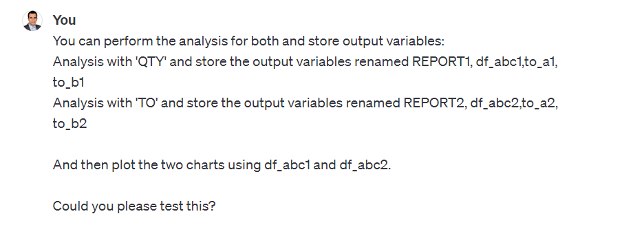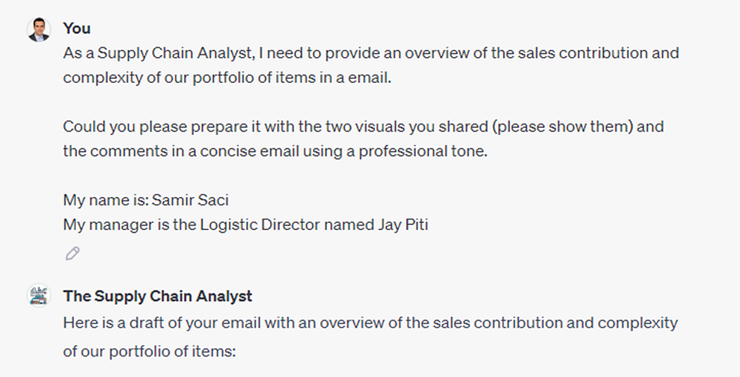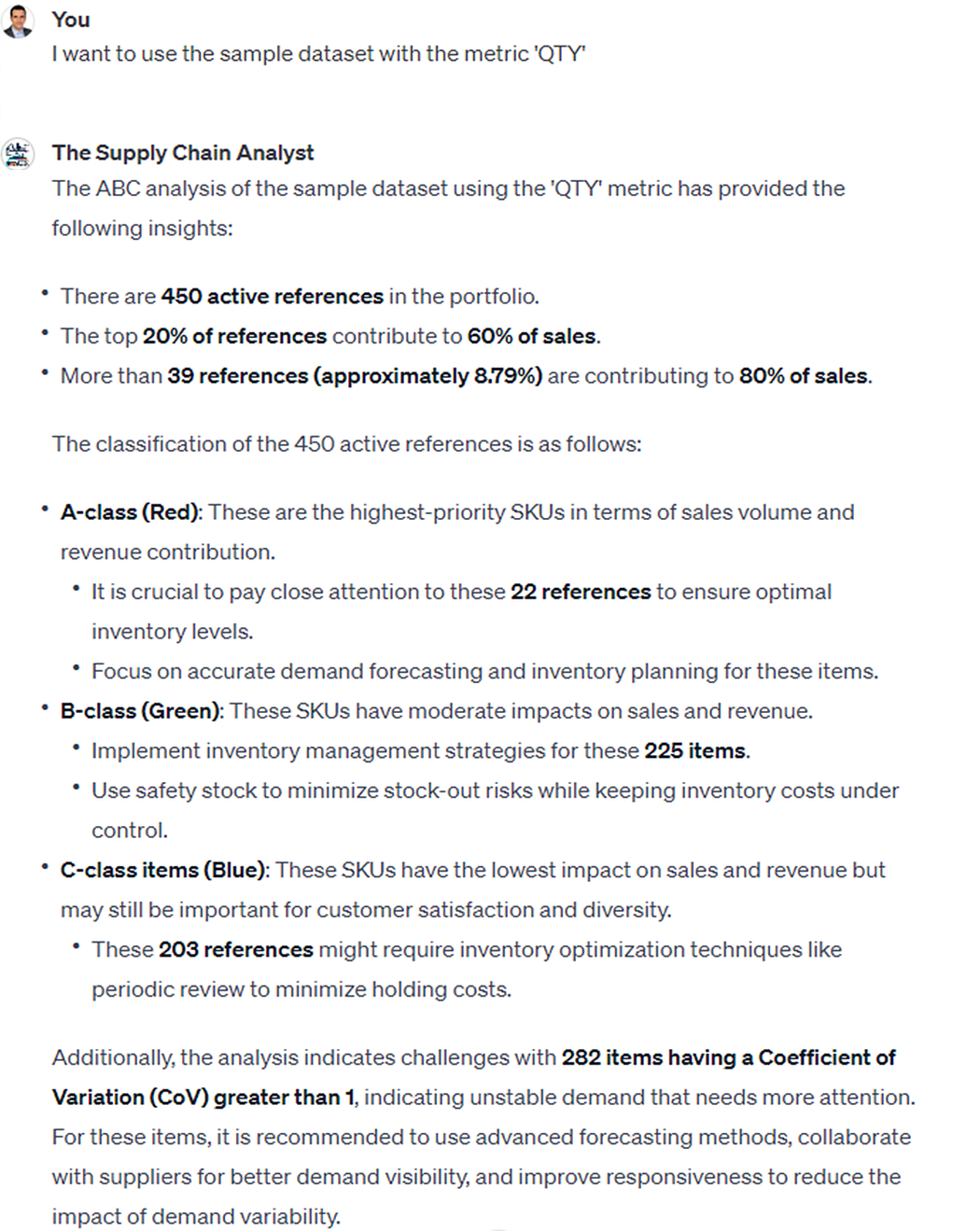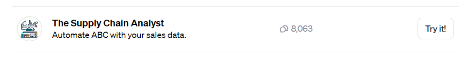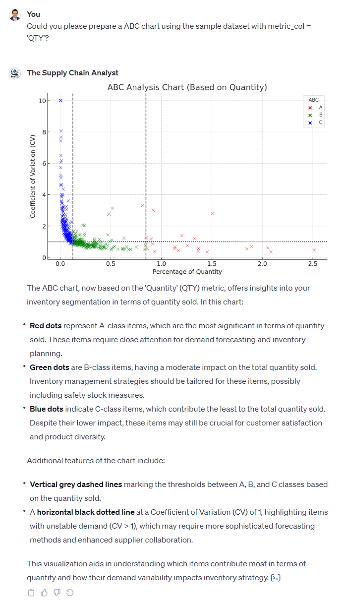 “The Supply Chain Analyst” is a Custom ChatGPT “GPT” that performs Pareto & ABC Analysis using sales data.