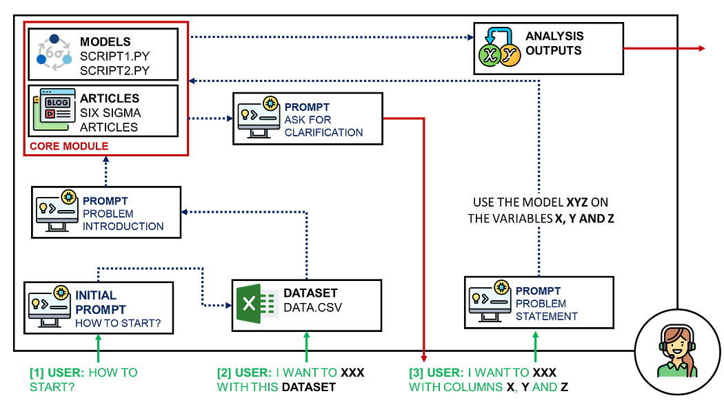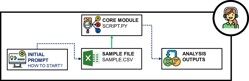 In this section, I explain to the agent how it is supposed to interact with users, use the Python script with the dataset and manage the outputs. - Section 2: How do you communicate the results?