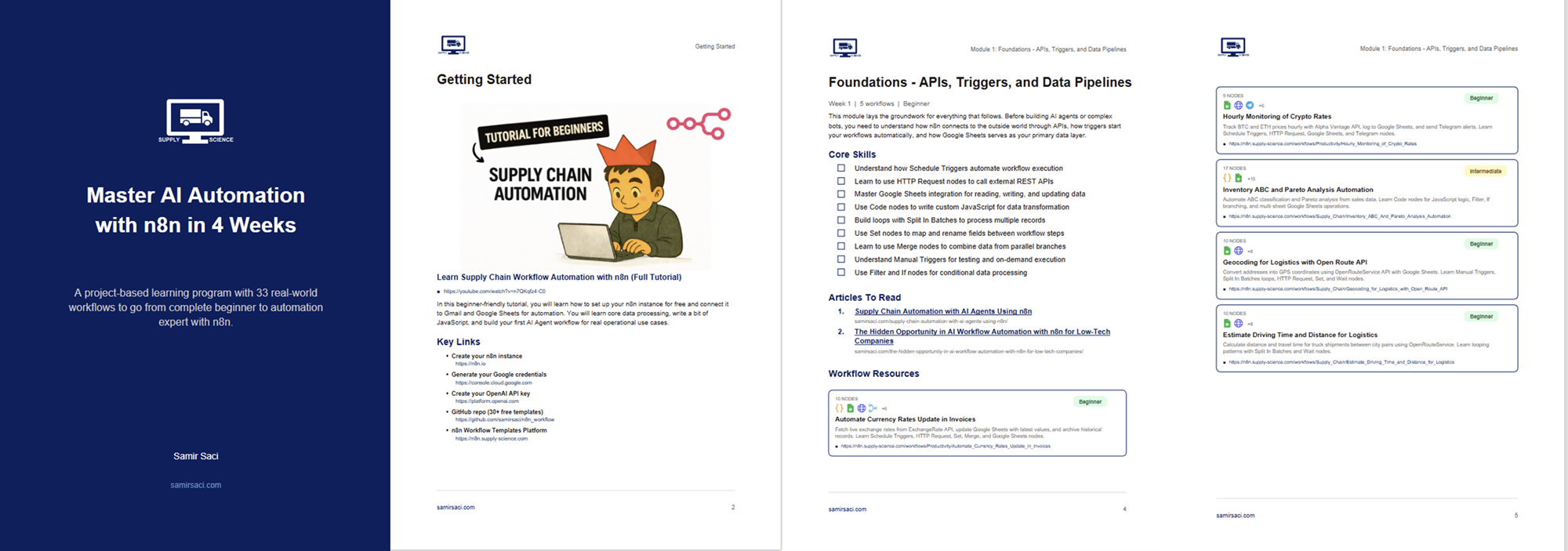 A project-based program with 30 real-world workflows. Learn APIs, web scraping, Telegram bots, AI email agents, and advanced multi-step automations.