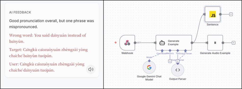 Together, they show how AI and low-code platforms like n8n can support anyone learning a complex language.