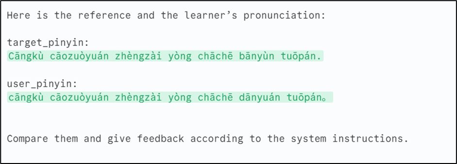 ]This pinyin is then sent to the AI node Pronounciation Analysis along with the target pronunciation.