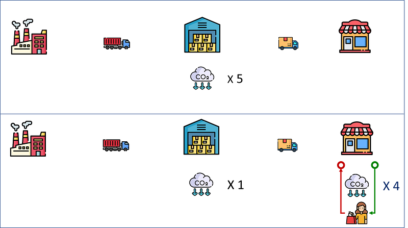 That means the additional emissions from the logistics of returned products are not offsetting the savings from product reuse.