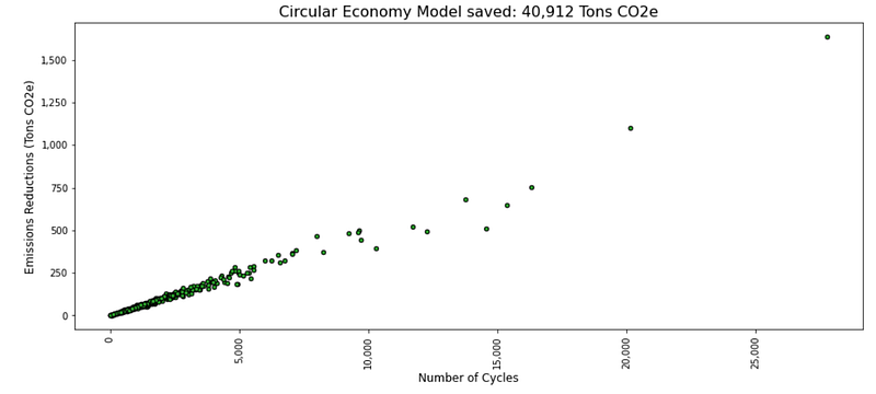 As expected, the amount of CO2e reduction is linearly linked with the number of cycles (i.e the number of times these items are reused).
