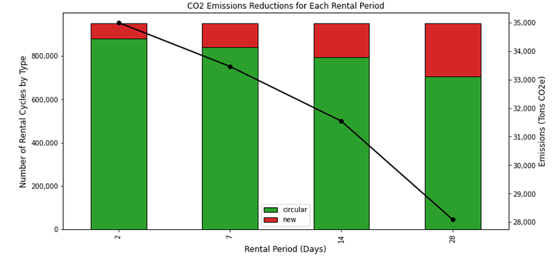 Because we do not have control of the demand variability, let us see if we can improve the emissions reductions by changing the rental period.