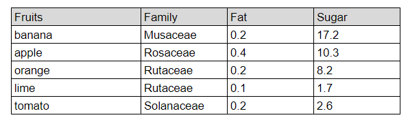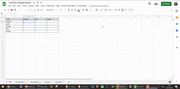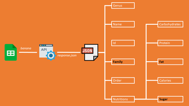 In the first column, you can find a list of fruits we want information about. And we call the API to get the: