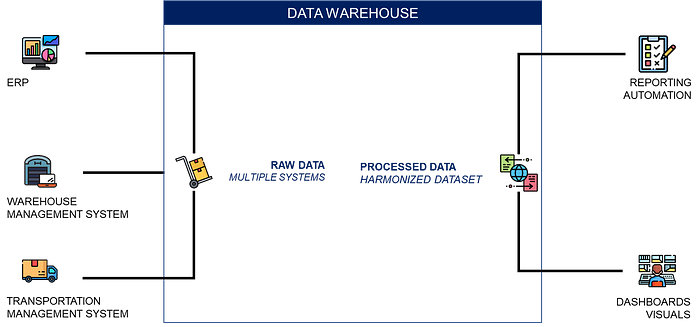 These KPIs, covering logistics and manufacturing, require data from multiple systems with different data formats and database structures.