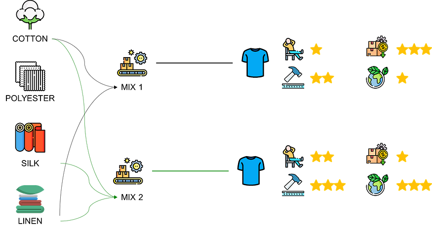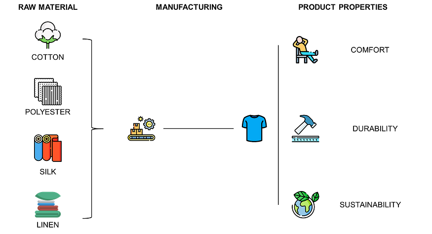 - Parameters: The quantity of each raw material used to produce a T-shirt
