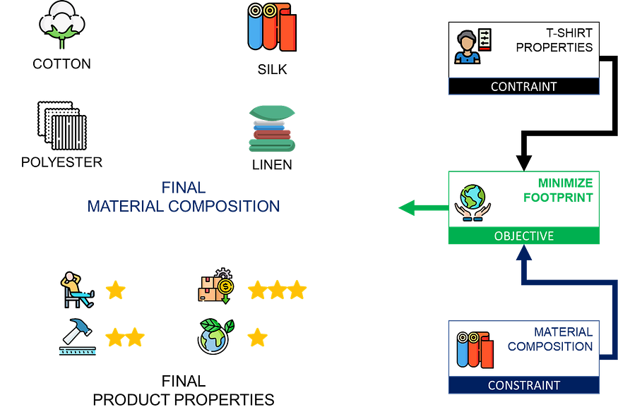 - Objective function: minimize environmental footprint, minimize the cost or a mix of both