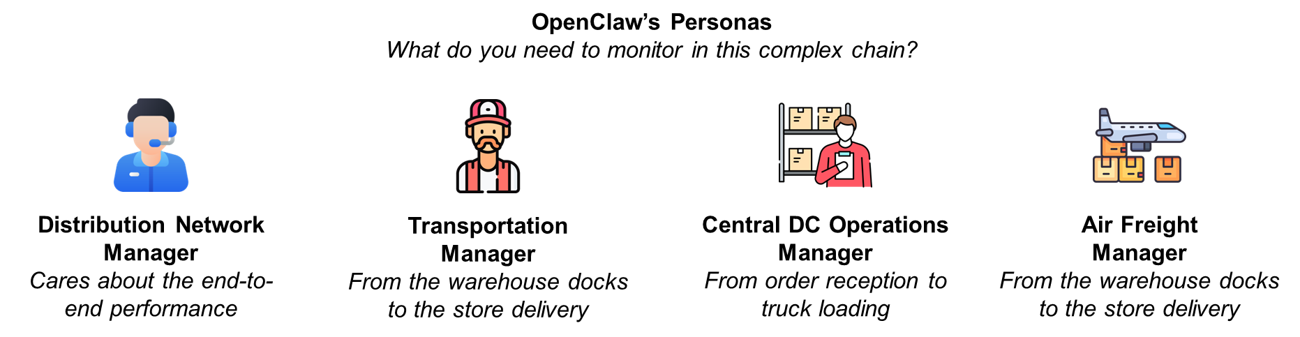 - Yuki, the Air Freight Manager, tracks flight variability and quantifies the downstream impact on late deliveries.
