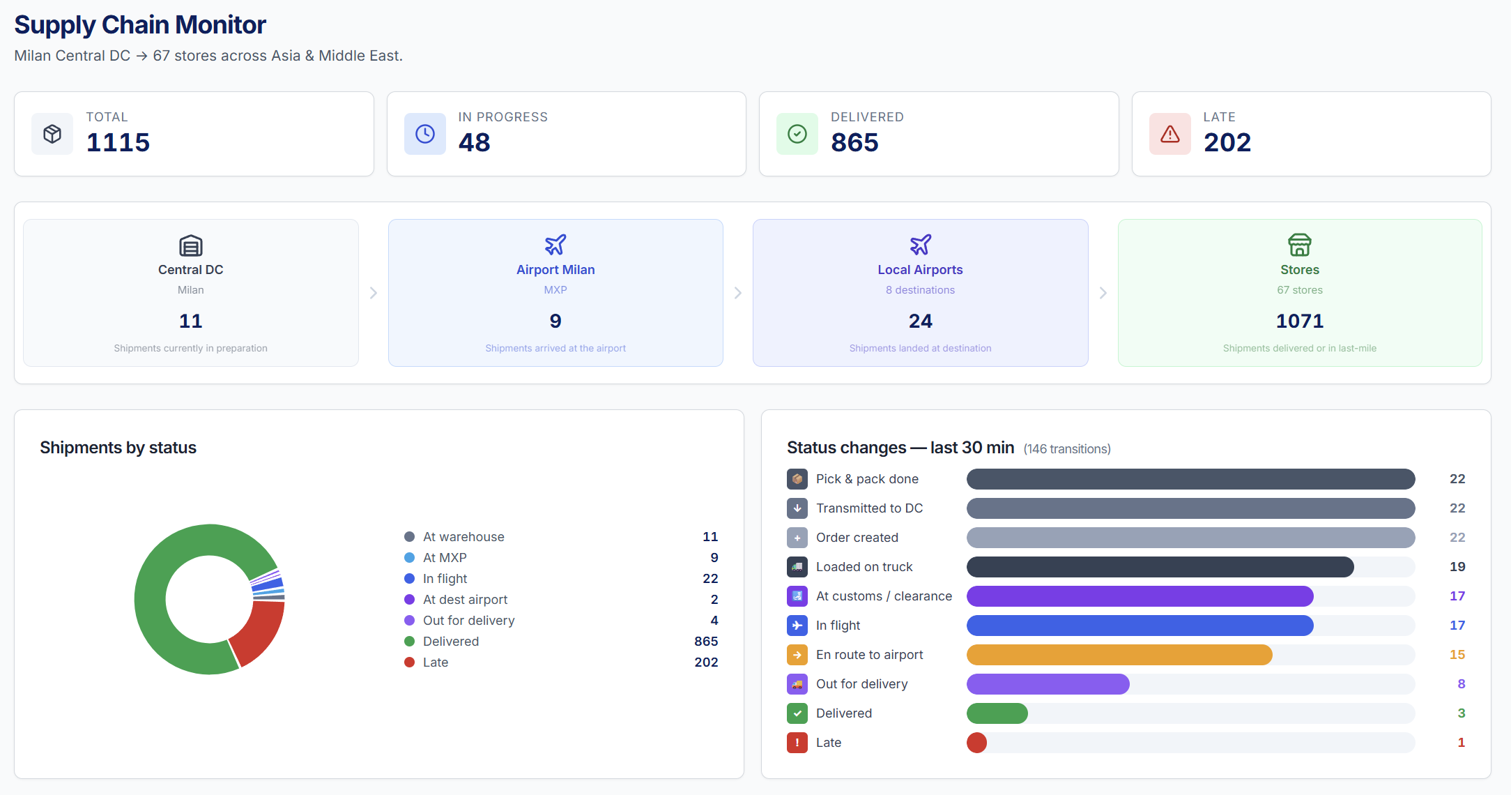 Mario asked me why 18% of his shipments were late when every team hit their target. I built a live simulation, connected an AI agent, and let it investigate across 8 routes in Asia and the Middle East.