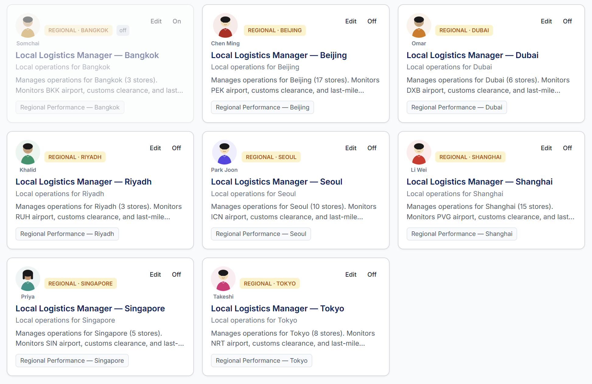 For that, each prompt is editable in the admin panel, so the operational team can adjust what Elena looks for or how Li Wei formats his Shanghai briefings without writing a single line of code.