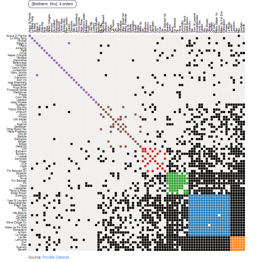 Smart visuals using matrix charts of cosmetics sales with color coding to understand customer behavior