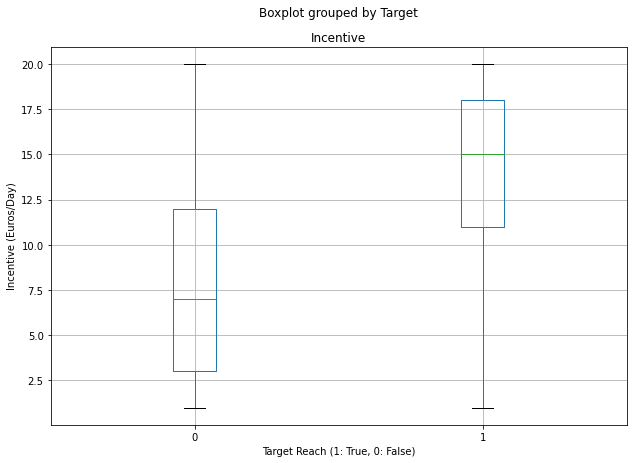 The median value of incentive for reached target’s day is more than 2 times higher than the one for the days below this target.