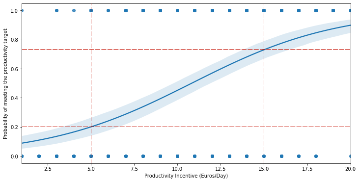 Logistic Regression will provide us with a probability plot. We can estimate the probability of reaching the target for each value of the daily incentive.