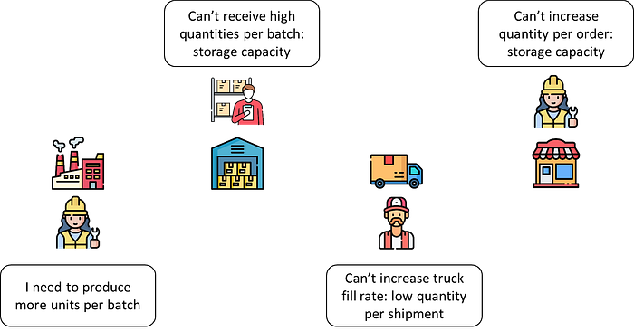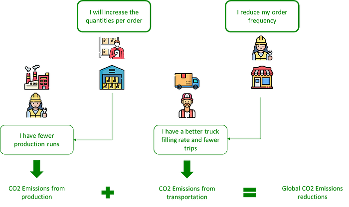 - Store managers keep low quantities per order (and increase the frequency) to minimise their inventory