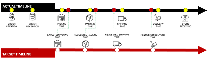 The idea is to compare the actual lead time per process and the targets set by service level agreements.