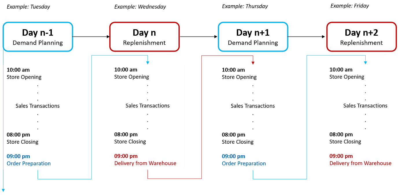 - Day n-1: Prepare Replenishment Orders