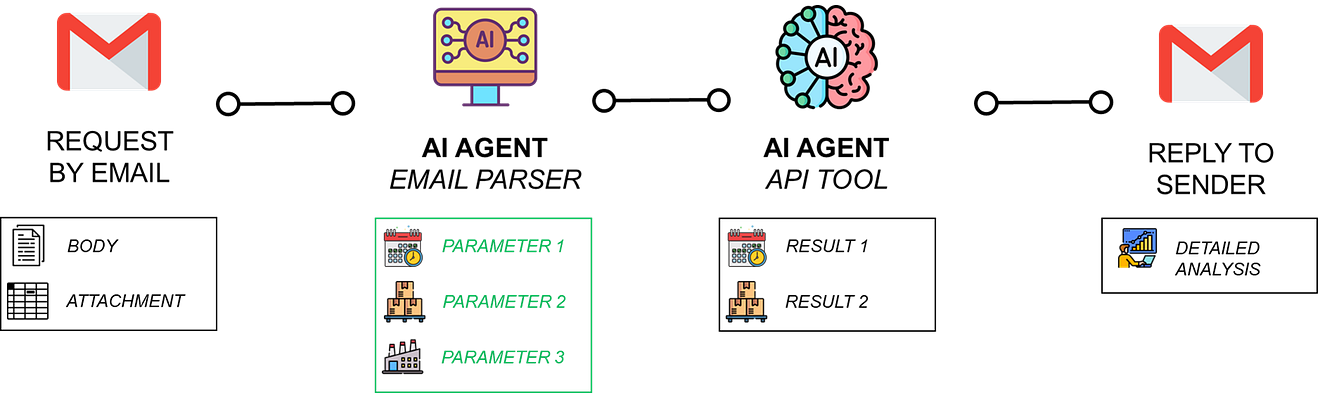 The agent can parse the email content, call the tool, and provide a reply.