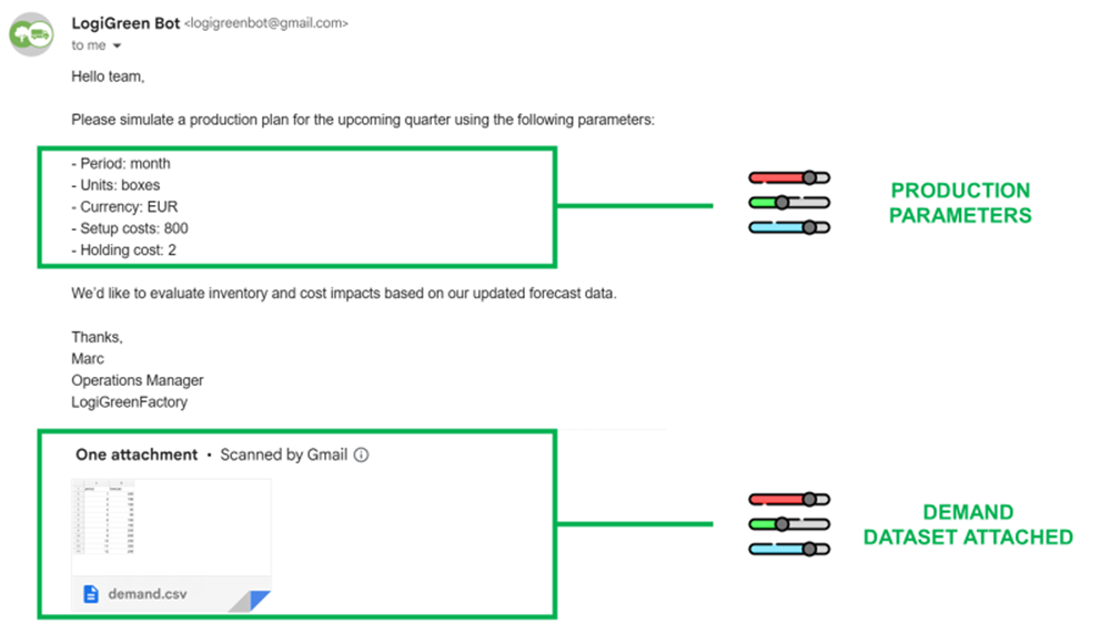 The idea was to connect this algorithm to a mailbox that received purchase orders from the commercial team.