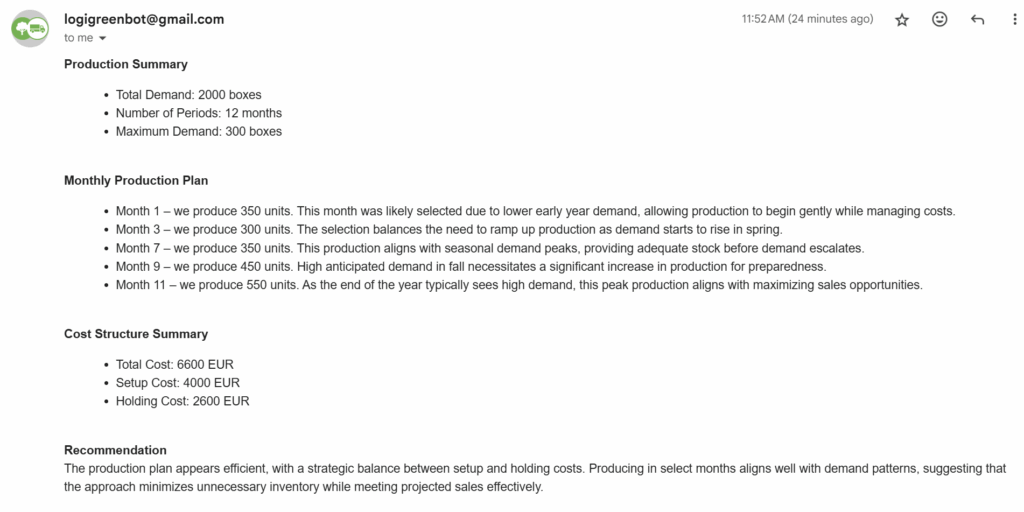 - Cons: You get production set up for each month with a positive demand