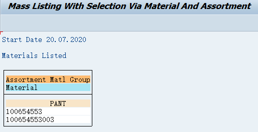 SAP will load the Listing report where you can see Material Codes (+ Variant) and the respective plant where they are listed.