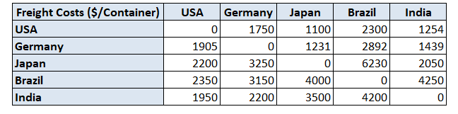 For instance, if you want to ship a container from Germany to Japan, it will cost you 1,231 ($/Container).