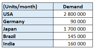 ('USA', 'USA') = 1,300,000 (Units/Month)