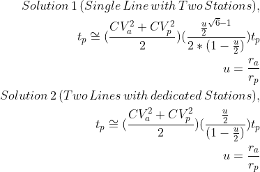 - We have no difference for a purely deterministic scenario (CVp = CVa = 0) as the queuing time is zero for both solutions.