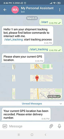 Design a Telegram Bot that will interact with truck drivers to track your shipments and provide real-time visibility of your transportation performance