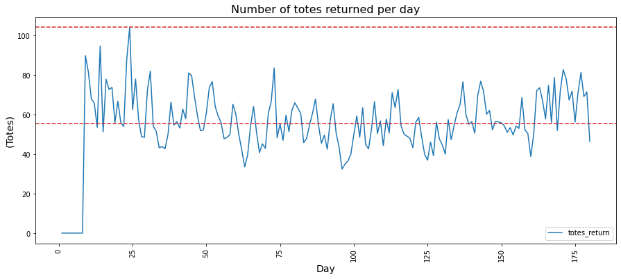 We have an average of 56 totes collected daily, with a peak of 105 totes for day 25.