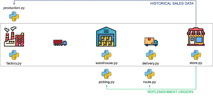 These computer models represent various supply chain components, including distribution centres, transportation networks, and manufacturing facilities.
