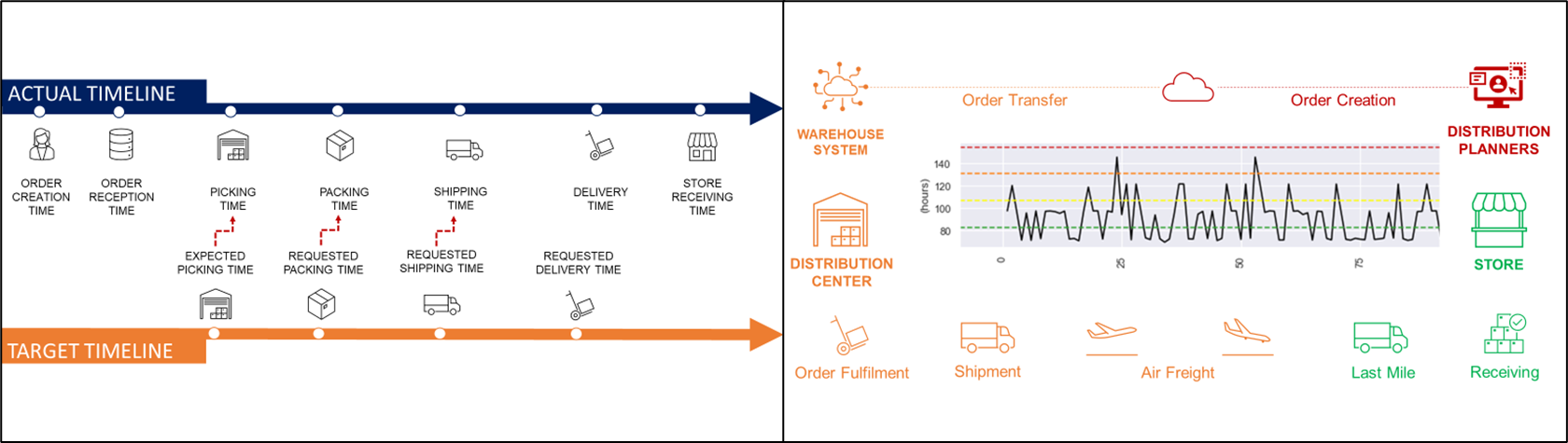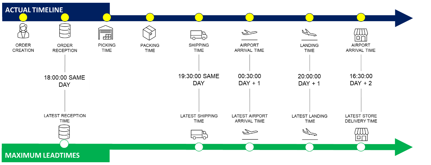 If a shipment is delivered late, the root cause analysis involves checking each timestamp to see where your shipment missed a cut-off time.