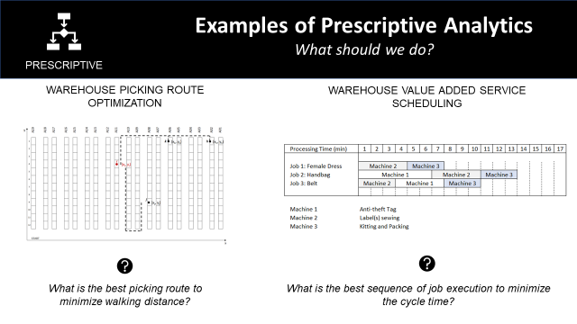 Most of the time, prescriptive analytics are linked to optimization problems where you need to maximize (or minimize) objective functions considering several constraints.