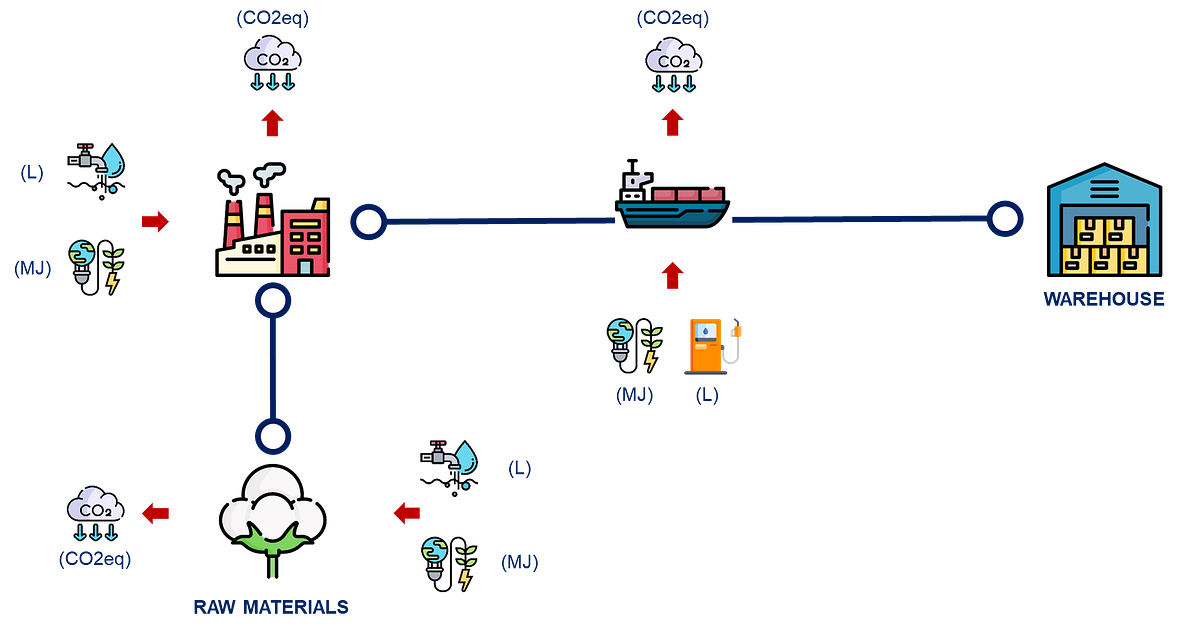 - Emissions from electricity generation and chemicals used for t-shirt production