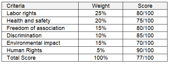 The auditors calculate a score linked to each criterion to represent the supplier’s performance.