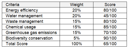 The total score is calculated by multiplying each criterion’s score by its weight and summing the results.